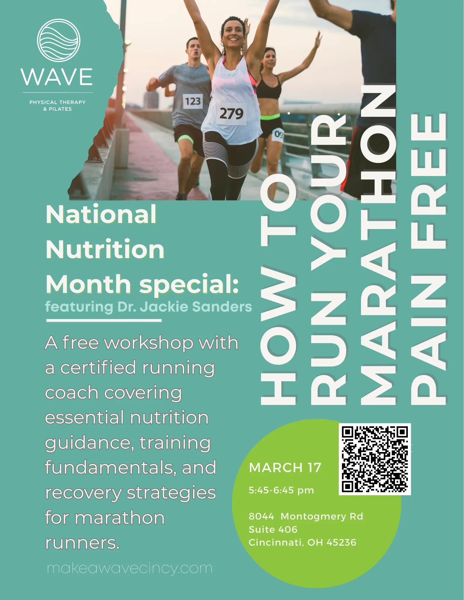 Training for a marathon doesn’t have to mean nagging aches, constant tightness, or crossing your fingers on race day. Join Dr. Jackie Sanders, physical therapist and running specialist, for a free workshop designed to help you train smarter and run your marathon pain-free.